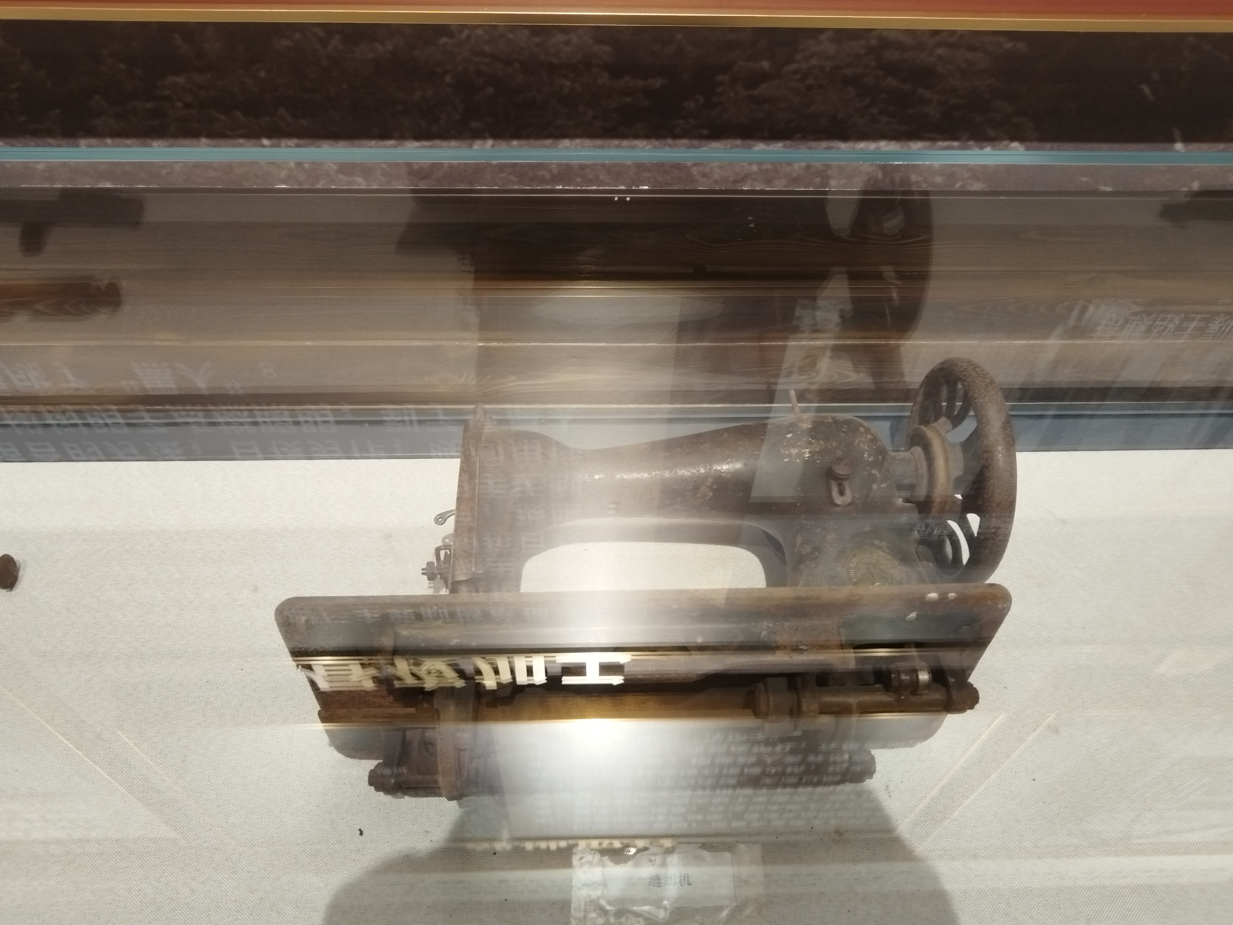 在展廳的醒目位置,一臺銹跡斑斑的老式手搖縫紉機(jī)吸引著參觀者的目光。“這可是我們的鎮(zhèn)館之寶?!蓖趿战榻B,它是在四塊石山上的密林中被發(fā)現(xiàn)的,發(fā)現(xiàn)時(shí)它被人用繩子高高吊在一棵大樹上。