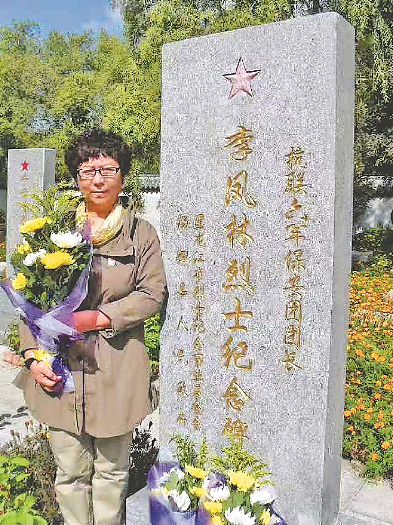 劉穎在舅舅李鳳林烈士紀念碑前。圖片由受訪者提供
