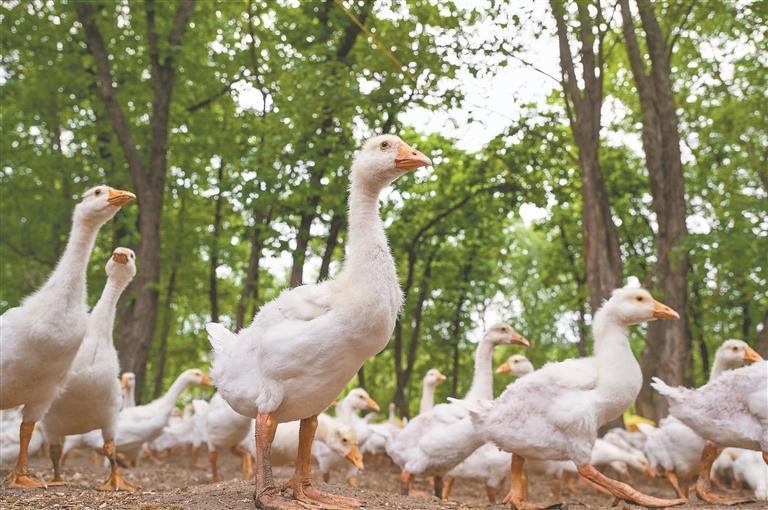林下養(yǎng)鵝,“森林+”致富路子多。本報(bào)記者 唐海兵攝