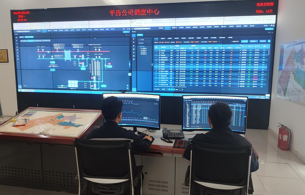 哈爾濱平房物業(yè)供熱有限責(zé)任公司(以下簡稱平房供熱公司)承擔(dān)著平房區(qū)945.53萬平方米供熱面積及90165戶熱用戶的供熱任務(wù)。在平房供熱公司調(diào)度中心,記者看到巨大的LED顯示屏上清晰展示著各換熱站溫度、補(bǔ)水頻率等實(shí)時數(shù)據(jù),不同顏色的線條勾勒出整個轄區(qū)管網(wǎng)分布圖。