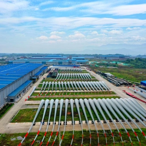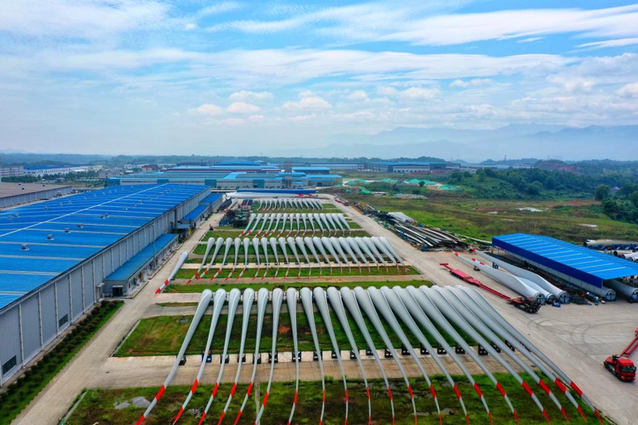 大型風(fēng)電葉片生產(chǎn)企業(yè)中材科技(萍鄉(xiāng))風(fēng)電葉片有限公司航拍景象。(王強攝 新華社通聯(lián)照片)