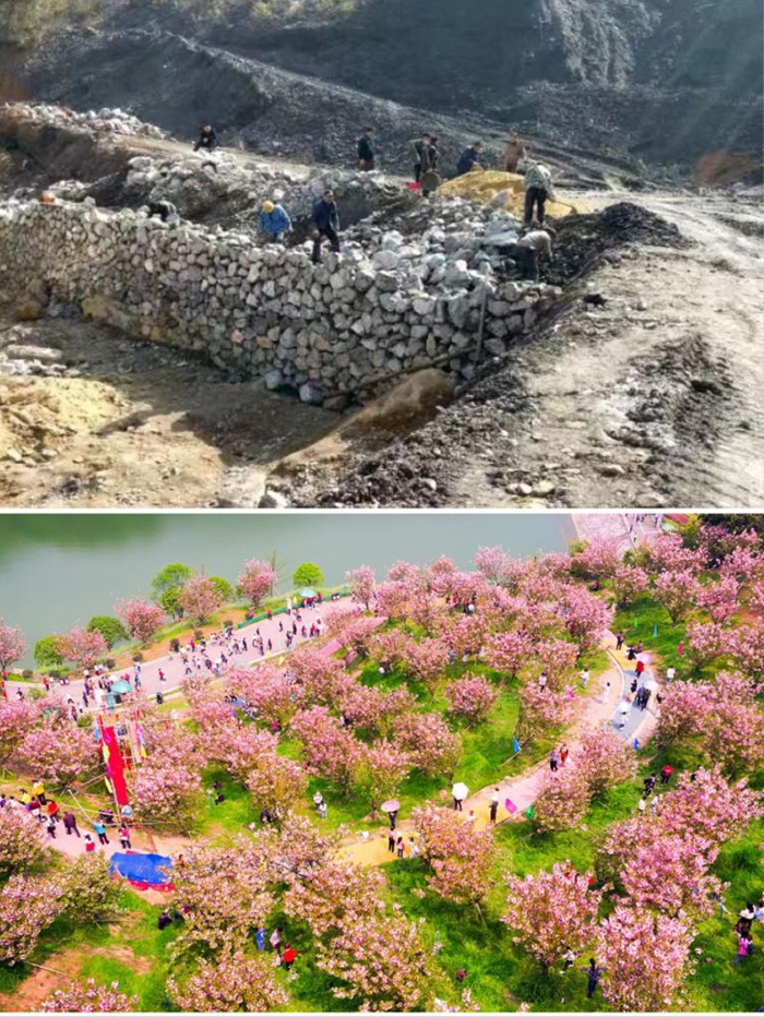 “過去,村里植被破壞、山體損毀、環(huán)境污染,裸露的礦山如一塊塊醒目的‘傷疤’?!甭韵麓妩h委書記周常堅說,當年村里7000畝山林,因采礦被破壞的就有近700畝,漫天灰塵讓人睜不開眼。