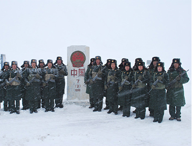 官兵在風雪中堅守在界碑旁