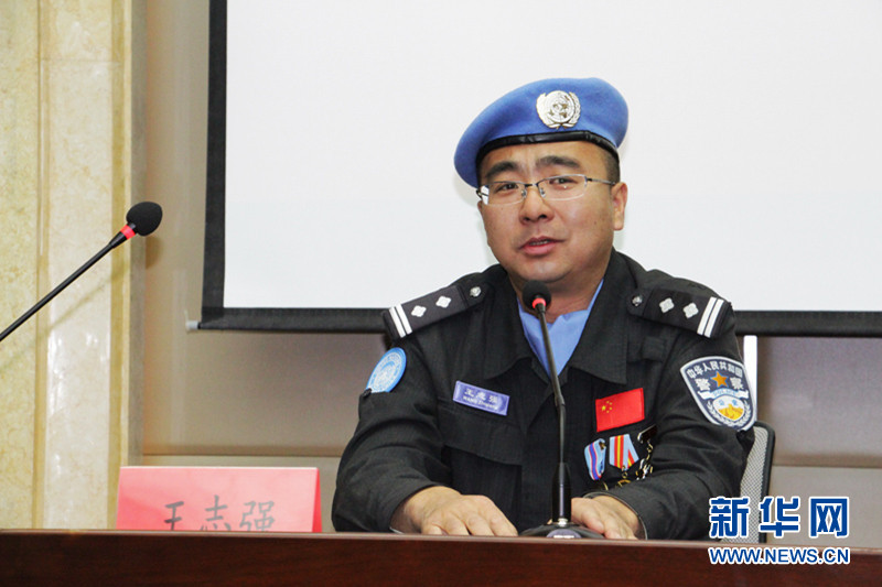 ????授課期間,維和英雄楊占江為學(xué)員們做了以《中國(guó)力量 藍(lán)盔風(fēng)采》為題目的演講,講述了第二支赴利比里亞維和警察防暴隊(duì)遠(yuǎn)赴西非、攻堅(jiān)克難、歷盡艱辛的維和經(jīng)歷,分享了他們遠(yuǎn)離祖國(guó)、恪盡職守、感人至深的心路歷程,集中展現(xiàn)了防暴隊(duì)在復(fù)雜動(dòng)蕩的局勢(shì)、艱苦惡劣的環(huán)境、埃博拉疫情肆虐的形勢(shì)下取得的卓越成就,充分展示了維和防暴隊(duì)文明之師、威武之師、和平之師的良好形象。授課結(jié)束后,維和英雄與學(xué)員們進(jìn)行了座談交流,防暴隊(duì)副隊(duì)長(zhǎng)王志強(qiáng)和隊(duì)員楊占江一一解答了學(xué)員們提出的問題,并與現(xiàn)場(chǎng)學(xué)員合影留念。(格日勒朝克圖 張志敏)