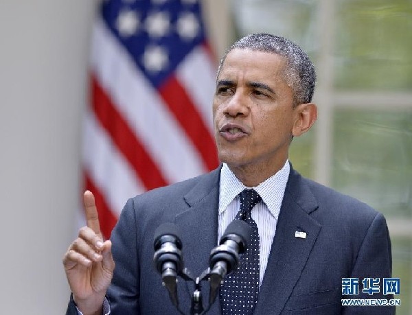 ??? 資料圖:2014年5月27日,美國(guó)總統(tǒng)奧巴馬在華盛頓白宮就從阿富汗撤軍問(wèn)題發(fā)表講話。美國(guó)總統(tǒng)奧巴馬27日宣布,有意在今年底北約作戰(zhàn)部隊(duì)撤離后在阿富汗部署大約9800名美軍。 新華社記者殷博古攝