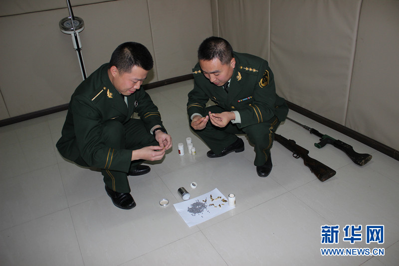 邊防官兵清點(diǎn)查獲的鉛彈