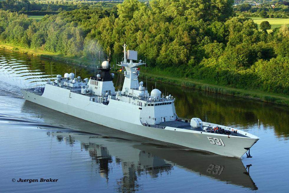 中國054A護(hù)衛(wèi)艦穿越基爾運河 風(fēng)景美如畫