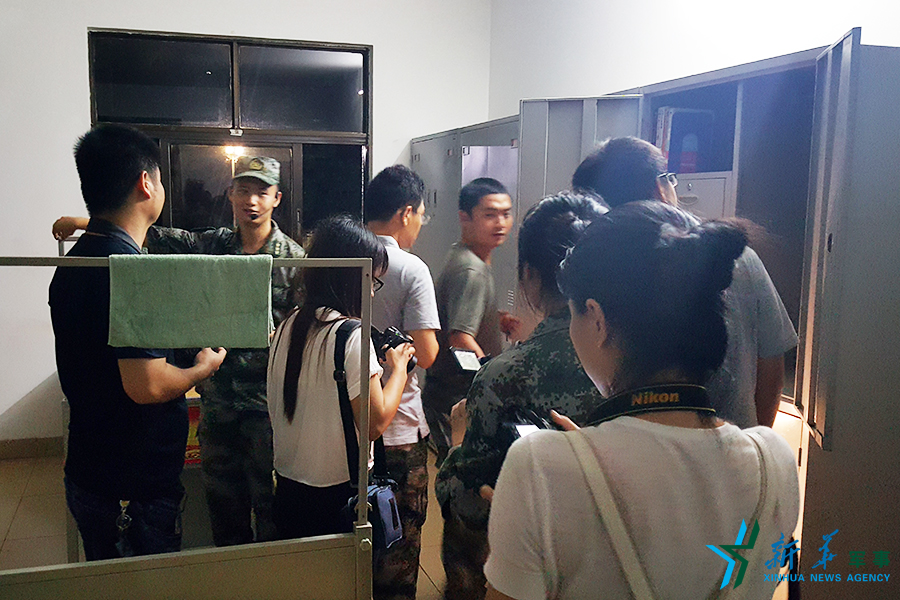 網(wǎng)絡(luò)名人以及媒體代表參觀連隊營區(qū)、內(nèi)務(wù)設(shè)施。李朋芳 攝