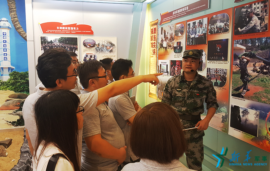 網(wǎng)絡(luò)名人以及媒體代表參觀連隊榮譽(yù)室。李朋芳 攝
