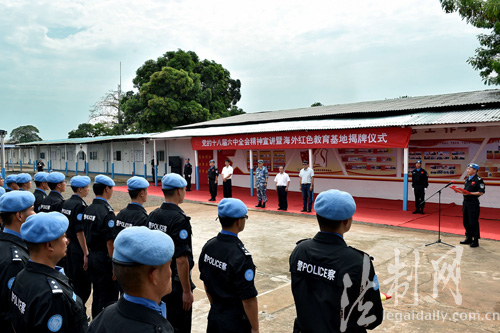 ????揭牌儀式上,中國第四支駐利比里亞維和警察防暴隊(duì)政委徐曉偉宣讀了公安部邊防管理局黨委書記、政委牟玉昌專門發(fā)來的賀電,向防暴隊(duì)成立海外紅色教育基地表示熱烈祝賀,充分肯定了防暴隊(duì)取得的成績,并要求武裝頭腦、指導(dǎo)實(shí)踐、推動(dòng)工作,牢固樹立“四個(gè)意識”,嚴(yán)肅黨內(nèi)政治生活,以更加出色的成績和過硬作風(fēng)為全國邊防官兵作好表率。