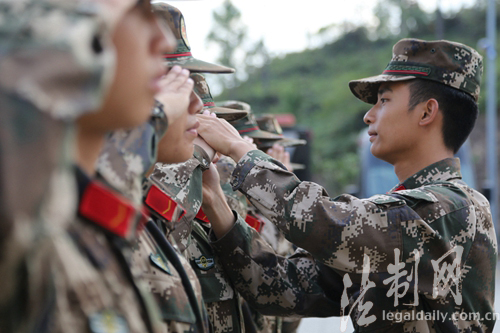 ????帶訓(xùn)骨干介紹,除了背包繩,班長(zhǎng)們還利用撲克牌、水壺、輪胎等多種“就地取材”的輔助訓(xùn)練物品,全面提高新兵的等軍事素養(yǎng),為新兵們趕赴禁毒一線打好基礎(chǔ)。(陳奕武 張偉民)