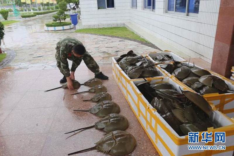 ????廣西防城港邊防支隊(duì)橫江邊境檢查站官兵日前在巡邏過(guò)程中查獲117只國(guó)家二級(jí)保護(hù)動(dòng)物中華鱟。