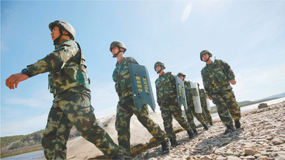 邊防派出所民警在巡邏執(zhí)法。