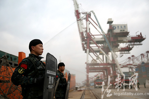 ????此次海上聯(lián)合反恐演練以阻止多名“涉恐分子”潛入港區(qū)及外輪企圖進行恐怖活動為背景,幾名“恐怖分子”駕車意圖混入油港區(qū)實施破壞,被識破后仍試圖強行進入。與此同時,前灣港集裝箱碼頭也發(fā)現(xiàn)幾名“涉恐分子”偽裝成船員,隨集裝箱貨輪進入港區(qū)實施破壞行動,并在一艘即將離港的貨輪上劫持“人質(zhì)”,企圖逃離港區(qū)。面對如此復(fù)雜的局面,公安、邊檢、海關(guān)、國檢、港口等部門接到情報預(yù)警信息后,及時啟動海上聯(lián)合反恐處突應(yīng)急預(yù)案,聯(lián)合反恐指揮部及時下達(dá)指令,參加演練單位立即行動,邊檢利劍突擊隊隊員迅速登輪控制“涉恐分子”,消防部門架設(shè)水槍撲滅引燃物品,海關(guān)、海事巡邏艇在集裝箱船舶周邊海域鋪設(shè)防油污圍欄,并收繳走私涉恐物資。成功處置險情后,碼頭恢復(fù)生產(chǎn)作業(yè)。