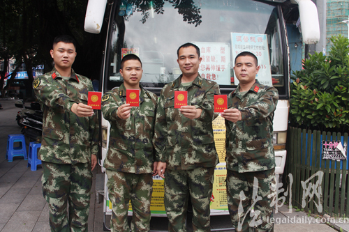 圖為官兵展示無(wú)償獻(xiàn)血證