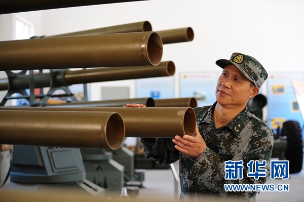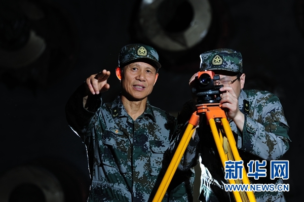 中國(guó)工程院院士、軍事科學(xué)院國(guó)防工程研究院研究員任輝啟檢查彈體作用情況(資料照片)?! ⌒氯A社發(fā)(侯藝兵 攝)