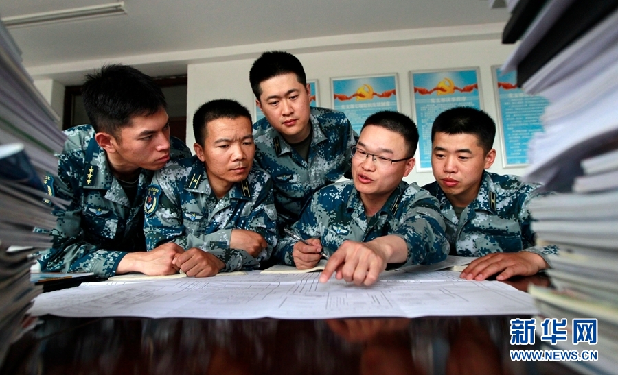 中部戰(zhàn)區(qū)空軍地導某部“高學歷戰(zhàn)勤班”成立于2009年。9年間,先后有3名博士、7名碩士在這里獻身科技強軍興軍?!案邔W歷戰(zhàn)勤班”現(xiàn)在的五位成員是碩士張少平(左二)、博士劉曉鵬(左三)、碩士何鋒(左四)、碩士景曉龍(左五)、碩士李佳恒(左一)。劉川 攝 新華網(wǎng) 發(fā)