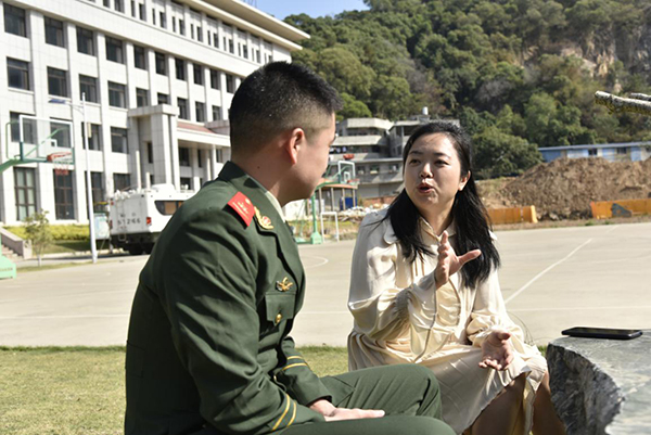 鄭如與戰(zhàn)士談心。