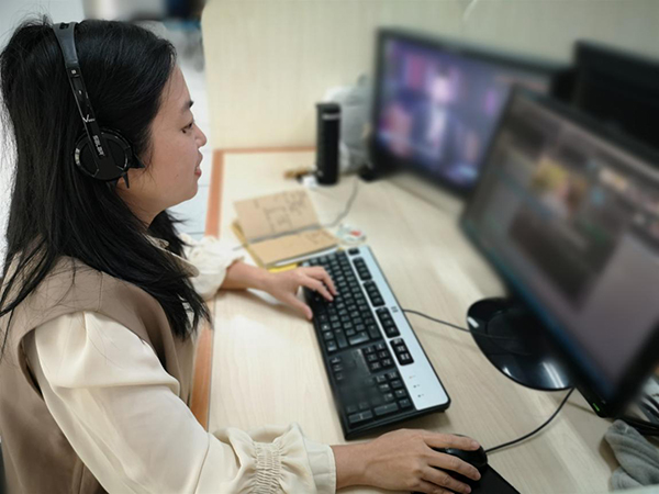 鄭如向業(yè)務(wù)骨干傳授視頻編輯技巧。