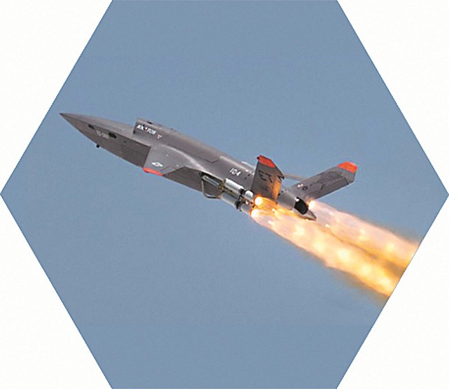 美国空军一架XQ-58A“女武神”无人机在测试中。