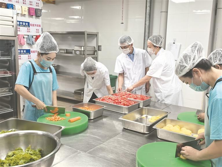多門冰柜、多功能切菜機、和面機、切肉機、高溫消毒柜……日前,記者在哈市平房區(qū)某集體配餐公司操作間看到,整潔的環(huán)境、齊備的廚具讓人眼前一亮。工作人員身著統(tǒng)一制服,戴著口罩,熟練地準(zhǔn)備餐食。