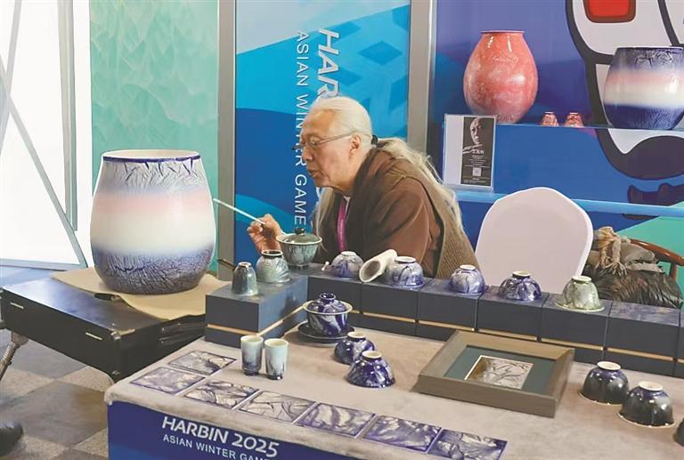 非遺傳承:冰花瓷作品創(chuàng)作中。