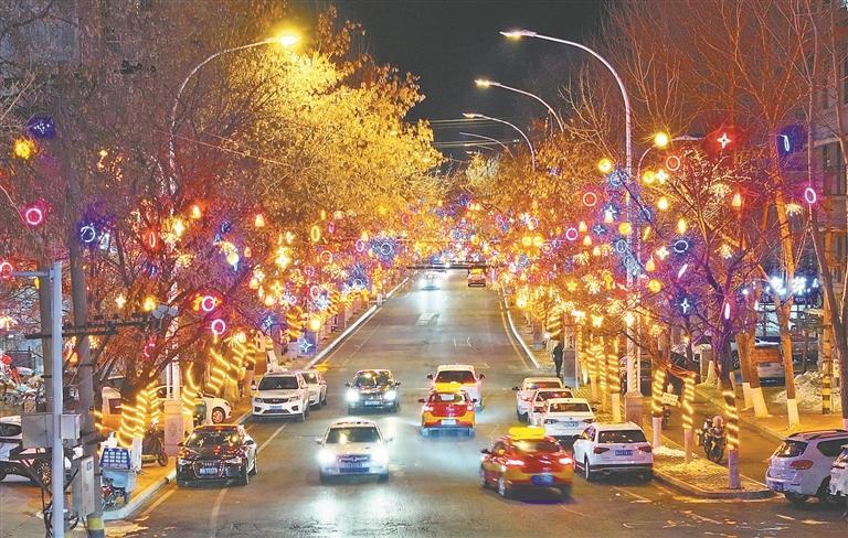 夜幕降臨,光明街的“愛的時光隧道”亮起燈光,12個月份愛情主題的紅色鋼架在光影里流轉(zhuǎn),這里已成為有名的網(wǎng)紅打卡地。慕名而來的游客們往往會穿過“愛的時光隧道”,到兩公里外的伏爾加莊園餐廳吃一頓正宗的俄式大餐,看一場異國風(fēng)情舞蹈,再愜意滿懷地歸去。