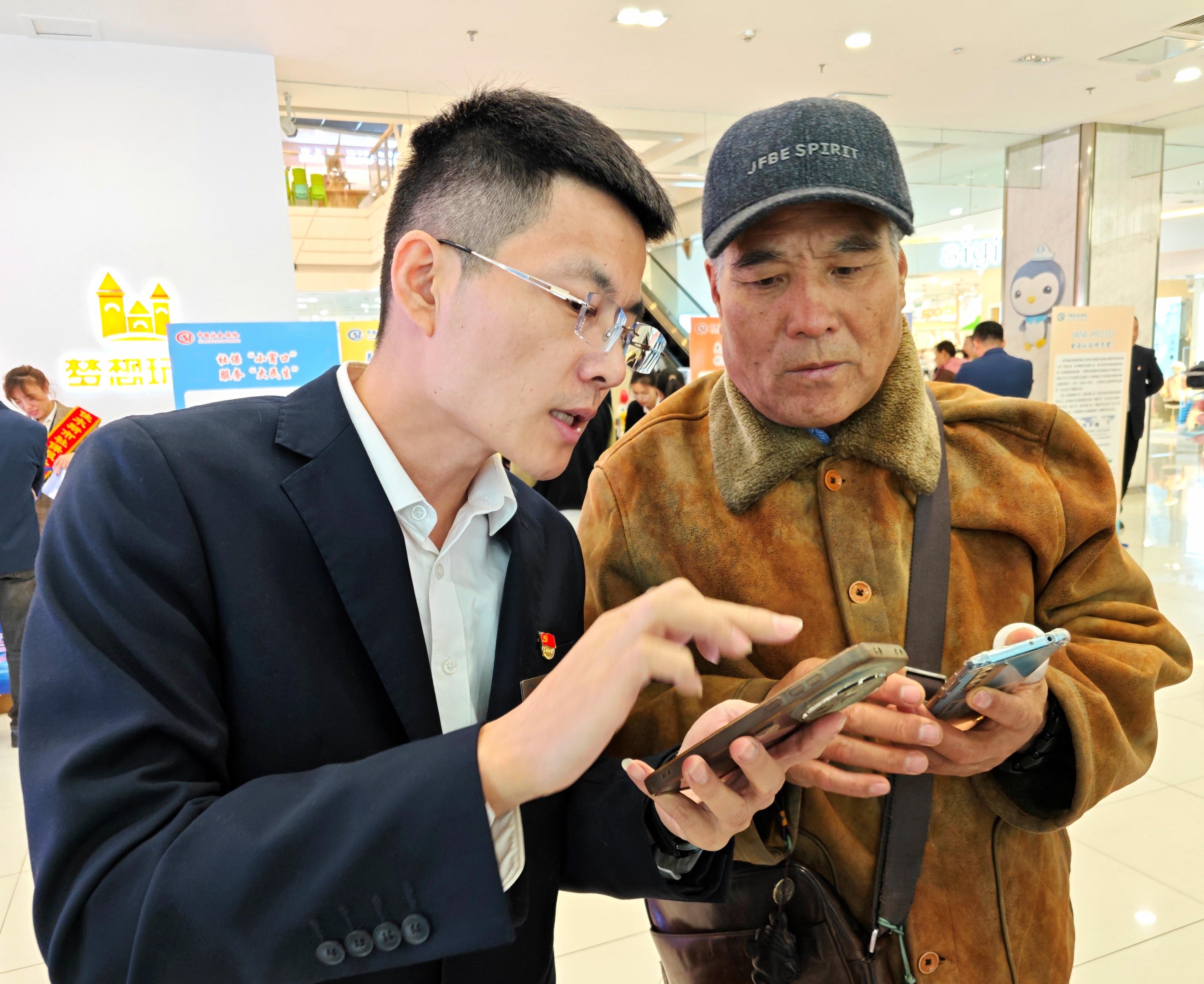 佳木斯市社保中心工作人員走進商圈,手把手教群眾完成相關(guān)業(yè)務(wù)線上辦理流程