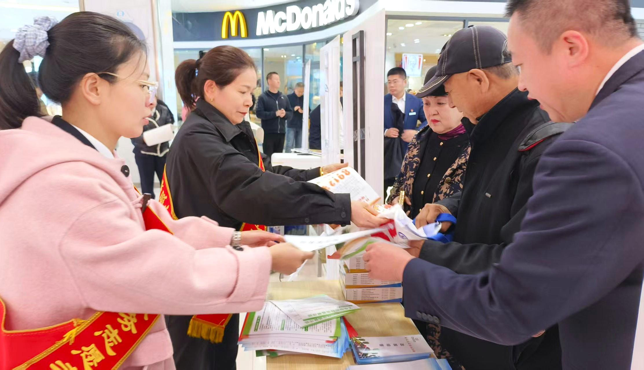 佳木斯市“2025年社保服務(wù)進萬家”活動在萬達廣場啟動,工作人員為往來群眾提供“一對一”精準解答
