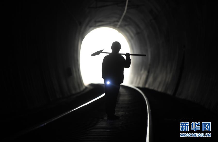 在廣西河池境內黔桂鐵路線上的鄧山隧道,中國鐵路南寧局集團有限公司柳州工務段的4名看守工輪換值班,依靠手電筒在黑暗中穿行,及時巡查隧道中可能出現(xiàn)的各種隱患,確保每天經隧道運行的59趟客貨列車春運安全。鄧山隧道全長773米,是一個需要人員全天候看守的鐵路隧道。