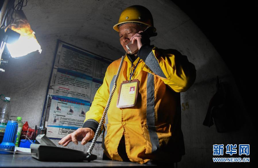 看守工廖成根在鄧山隧道內(nèi)通過電話匯報當(dāng)日班次的情況(1月30日攝)。