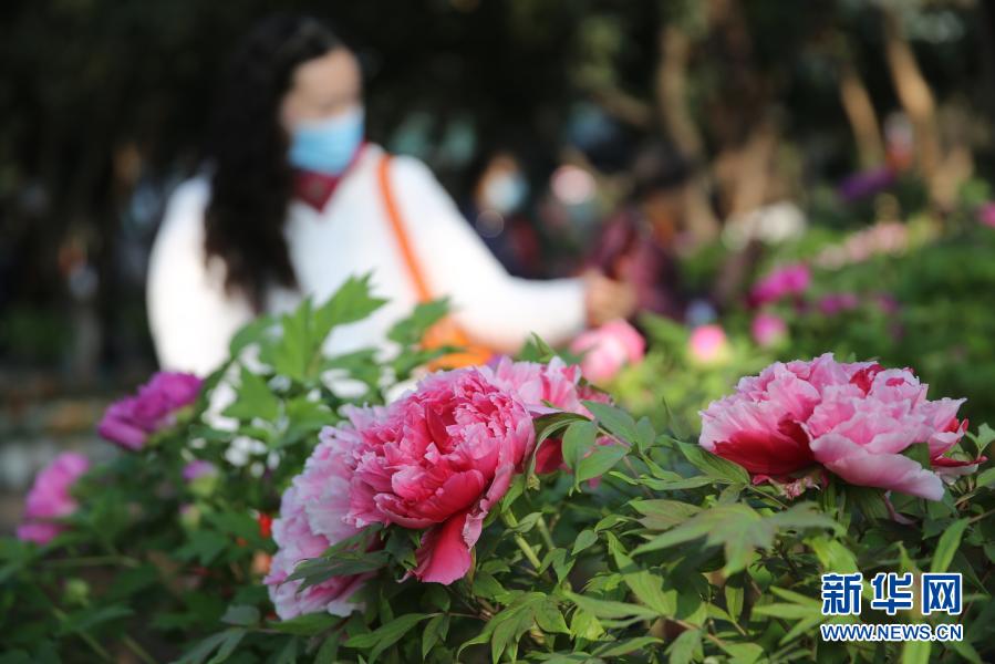 2月14日,游客在昆明市大觀公園觀賞盛開(kāi)的牡丹。新華社發(fā)(梁志強(qiáng) 攝)
