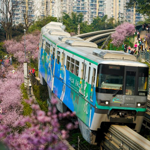 初春時(shí)節(jié),重慶氣溫逐漸回暖,暖陽里的山城春意盎然。在重慶軌道交通2號線佛圖關(guān)段,山城步道上的梅花簇簇綻放,單軌列車穿越花海,組成一幅賞心悅目的獨(dú)特城市景觀。