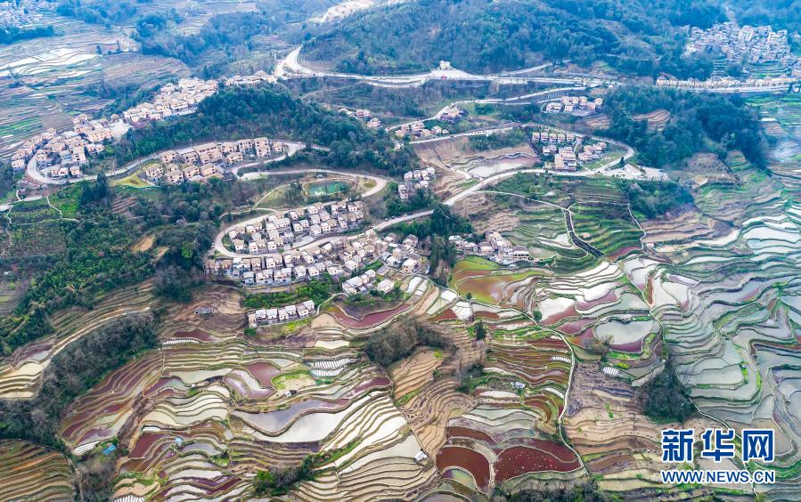 春日里,位于云南省紅河哈尼族彝族自治州元陽縣境內(nèi)的哈尼梯田在不同光照條件下呈現(xiàn)出豐富色彩,與周邊村寨、山系等和諧相融,猶如一幅幅色彩斑斕的油畫,美不勝收。