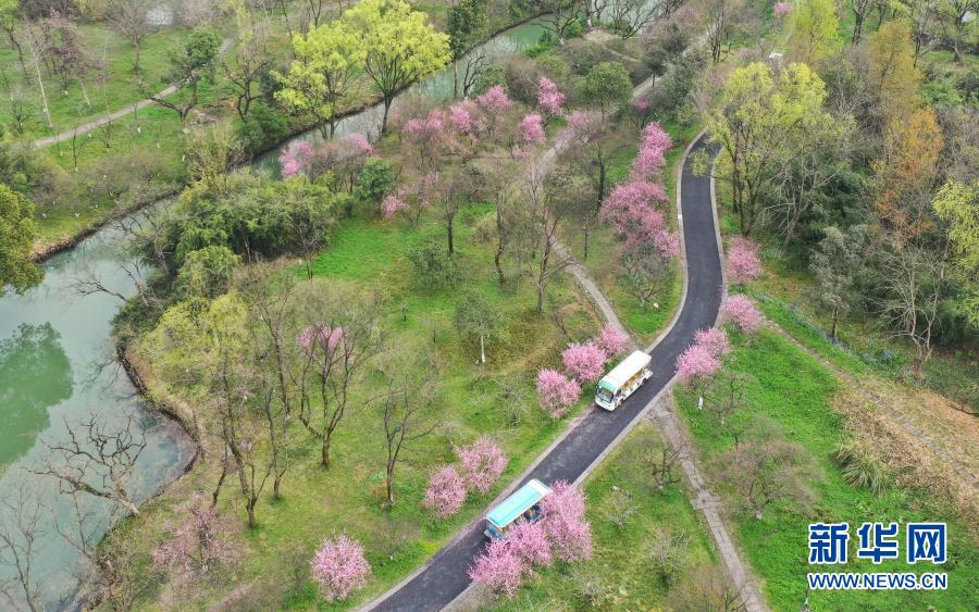 3月2日,觀光車在西溪濕地內(nèi)行駛(無人機(jī)照片)。