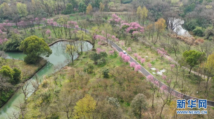3月2日,觀光車在西溪濕地內(nèi)行駛(無人機(jī)照片)。