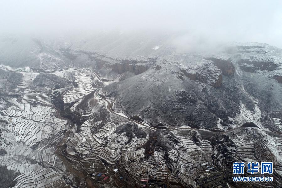 春雪落太行 梯田美如畫