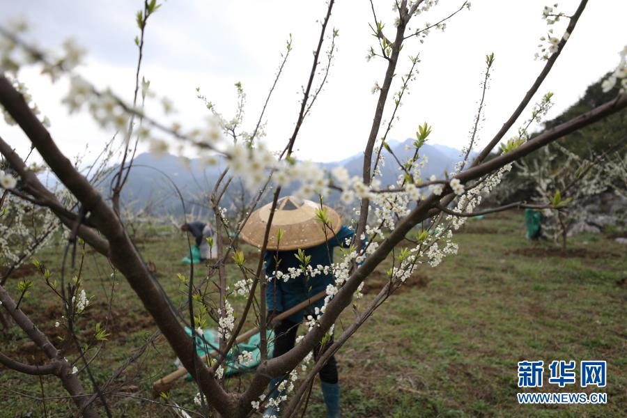 3月2日,村民在貴州省銅仁市江口縣閔孝鎮(zhèn)提紅村過江屯翠紅李種植基地進(jìn)行春管作業(yè)。新華社發(fā)(李鶴 攝)