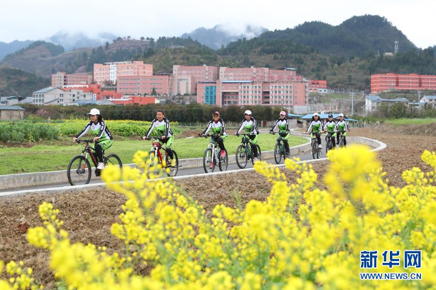3月8日,自行車騎行愛好者在貴州省遵義市余慶縣觀光園內(nèi)騎行健身。