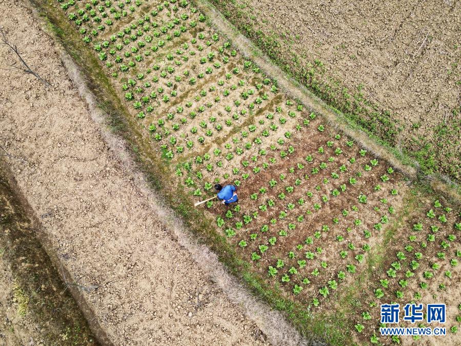 3月13日,遵義市匯川區(qū)團(tuán)澤鎮(zhèn)農(nóng)民在田間勞作(無(wú)人機(jī)照片)。新華社發(fā)(羅星漢 攝)