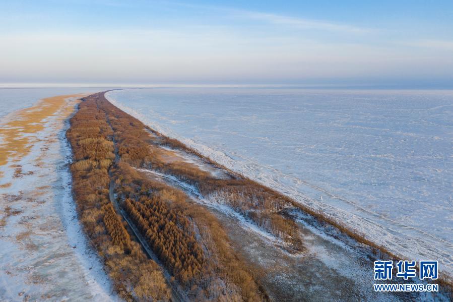 近日,中俄界湖興凱湖仍舊封凍,遼闊的冰面景色壯美。