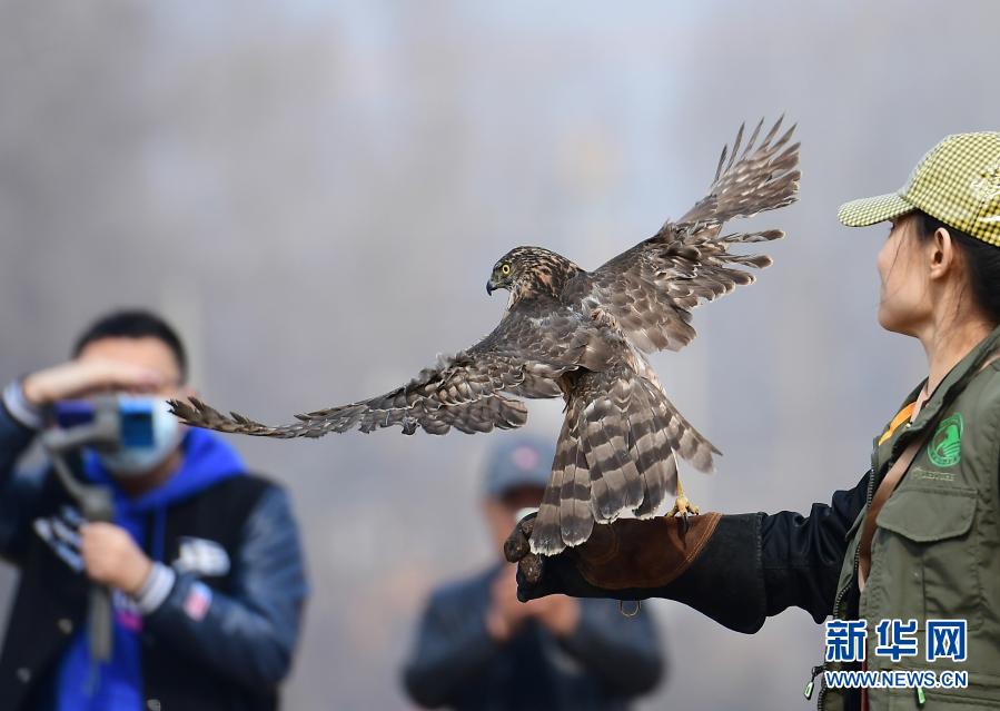 3月14日,沈陽猛禽救助中心志愿者將救助的蒼鷹進(jìn)行放飛。