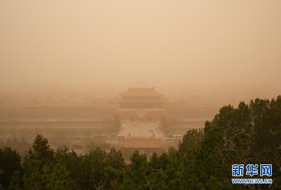 這是3月15日在景山上拍攝的北京故宮。當(dāng)日,我國北方多地出現(xiàn)沙塵天氣。新華社記者 陳曄華 攝