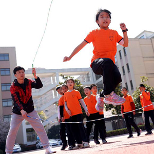 自2016年開始,安徽省合肥市瑤海區(qū)大通路小學(xué)新海校區(qū)將“花樣跳繩”運(yùn)動(dòng)融入學(xué)校素質(zhì)教育實(shí)踐中,聘任專業(yè)老師,開設(shè)花樣跳繩課、組建花樣跳繩隊(duì),并分年級(jí)編寫特色校本教材,開展全校范圍內(nèi)的花樣跳繩活動(dòng)。通過該項(xiàng)運(yùn)動(dòng),為孩子們提供鍛煉展示的平臺(tái),豐富學(xué)生體育活動(dòng)內(nèi)容,增強(qiáng)學(xué)生體能體質(zhì)。