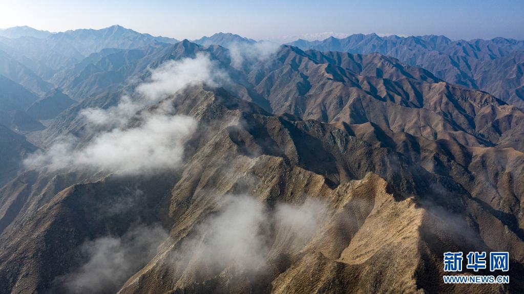這是黃河黑山峽河段沿線的山巒(4月5日攝,無人機(jī)照片)。