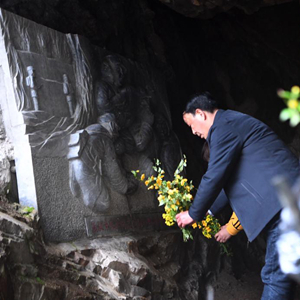 4月2日,曾祥有在金剛臺紅軍洞里獻(xiàn)花祭奠。