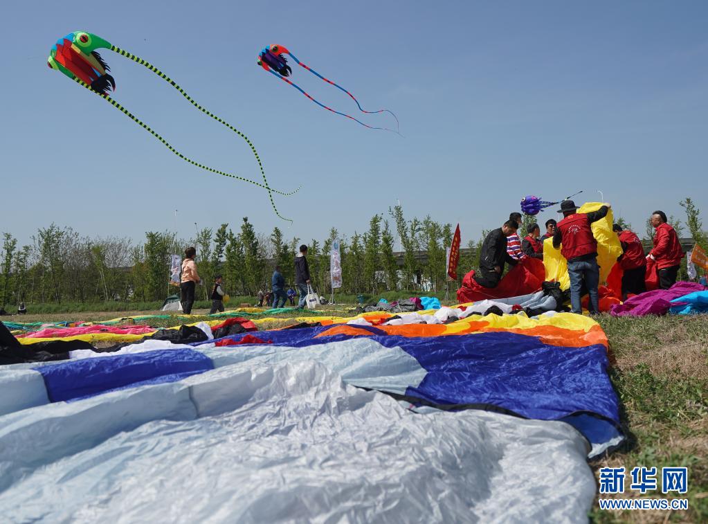 4月10日,人們在第二屆金陵風(fēng)箏會(huì)上放風(fēng)箏。當(dāng)日,第二屆金陵風(fēng)箏會(huì)在江蘇省南京市浦口區(qū)永寧街道舉行。人們放飛風(fēng)箏,歡度快樂時(shí)光。新華社記者 季春鵬 攝