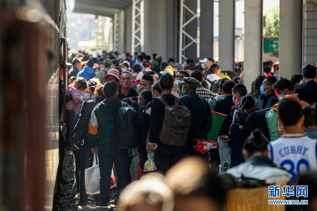 人們準(zhǔn)備乘坐5633次列車出行(4月11日攝)。新華社記者 沈伯韓 攝