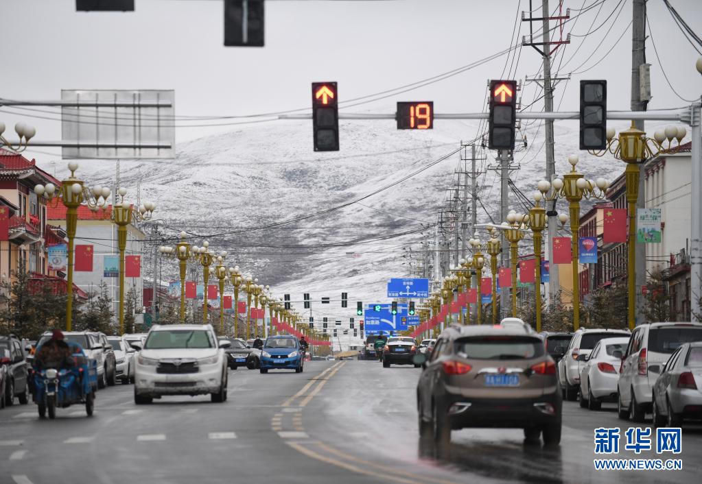 這是4月19日在青海省果洛藏族自治州甘德縣拍攝的雪后街景。新華社記者 張曼怡 攝