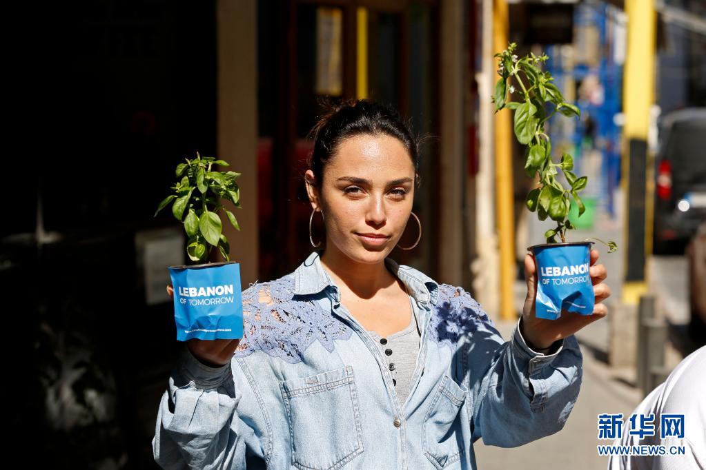 當(dāng)日是“世界地球日”,“明日黎巴嫩”協(xié)會在貝魯特向人們分發(fā)秧苗,提醒人們保護(hù)環(huán)境。